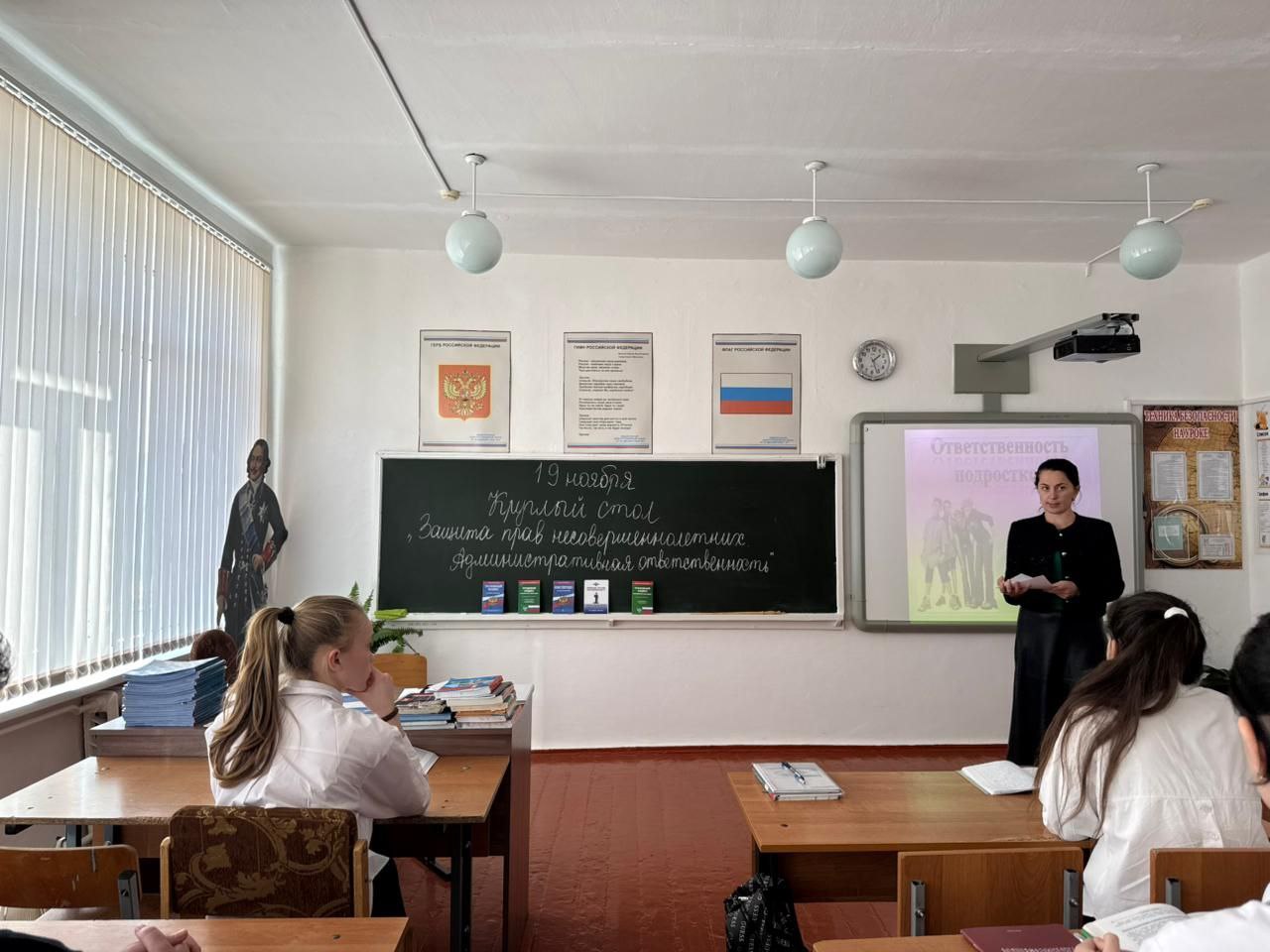 19.11.2025 года в рамках Всероссийской акции "День правовой помощи детям" в 9 Б классе проведен круглый стол на тему "Защита прав несовершеннолетних. Административная ответственность".